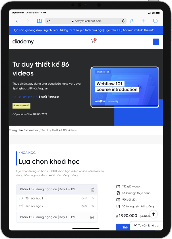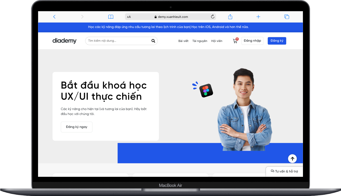 Dự án thiết kế website bán khóa học và template tài nguyên online cho một khách hàng trong lĩnh vực giáo dục. Với sứ mệnh cung cấp các khóa học chất lượng cao và tài nguyên học tập trực tuyến, website Diademy – Elearning được xây dựng để mang lại một nền tảng học tập tiện lợi, linh hoạt và dễ tiếp cận cho học viên ở mọi cấp độ.
