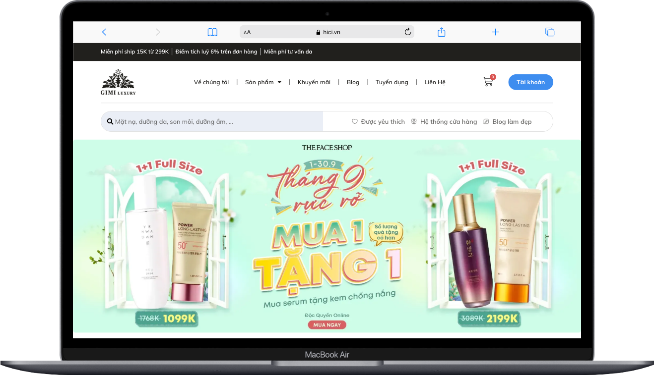 Dự án thiết kế website bán mỹ phẩm cho Gimi Mart, một cửa hàng chuyên cung cấp các sản phẩm chăm sóc da và làm đẹp chất lượng cao. Website được xây dựng để giúp Gimi Mart dễ dàng tiếp cận khách hàng, mang đến trải nghiệm mua sắm mỹ phẩm trực tuyến nhanh chóng và tiện lợi.
