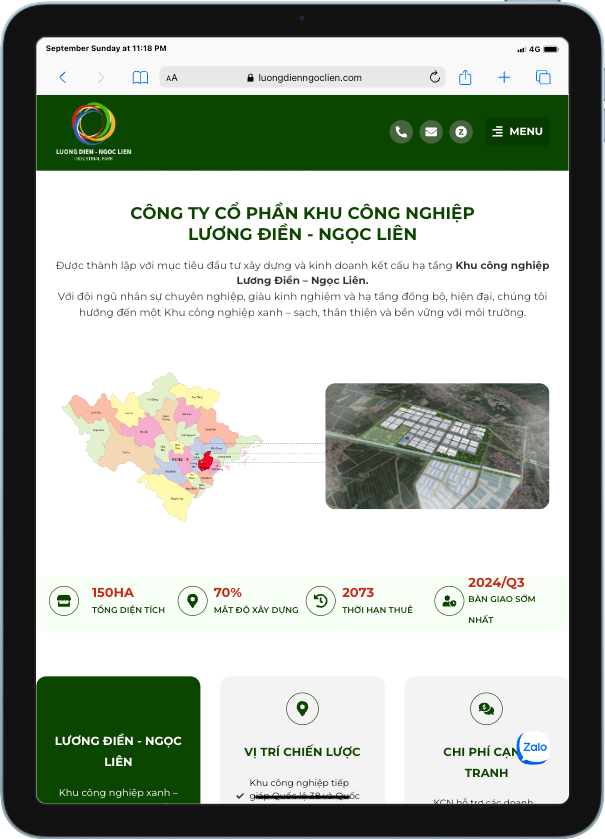 Dự án thiết kế website cho Công ty Cổ phần Khu Công Nghiệp Lương Điền – Ngọc Liên, được thành lập với mục tiêu đầu tư xây dựng và kinh doanh hạ tầng khu công nghiệp. Với tầm nhìn phát triển một Khu công nghiệp xanh, sạch và bền vững, website đóng vai trò là kênh thông tin chuyên nghiệp, cung cấp các thông tin chi tiết về hạ tầng, dịch vụ, và các lợi thế thu hút các nhà đầu tư.