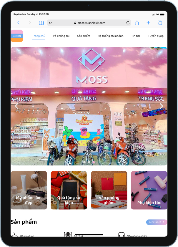 Dự án thiết kế website giới thiệu doanh nghiệp, chi nhánh, và sản phẩm cho Moss Việt Nam, một thương hiệu bán lẻ nổi tiếng chuyên cung cấp gấu bông, phụ kiện, quà tặng, và văn phòng phẩm. Từ cửa hàng đầu tiên được mở vào năm 2017, Moss hiện đã có 18 chi nhánh trải rộng tại 11 tỉnh thành trên khắp cả nước. Website được xây dựng nhằm thể hiện sự phát triển của thương hiệu và tạo ra kênh kết nối thuận tiện giữa Moss và khách hàng.