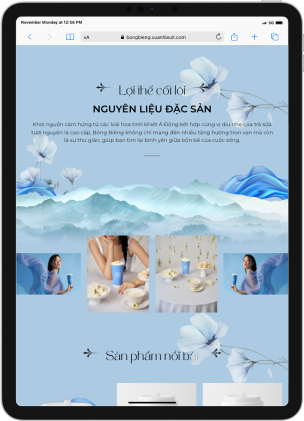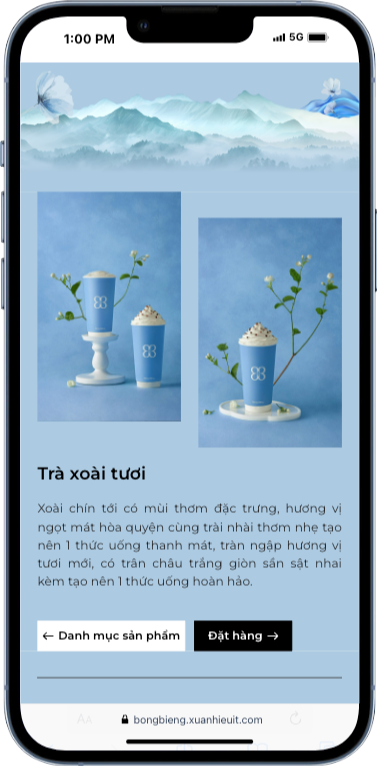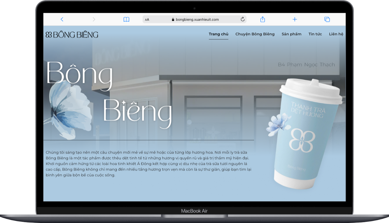 Dự án thiết kế website cho thương hiệu Trà sữa Bông Biêng nhằm mang đến một nền tảng số tinh tế, nổi bật sự cao cấp và giá trị thẩm mỹ hiện đại. Mỗi ly trà sữa được ví như một tác phẩm nghệ thuật, hòa quyện từ những hương hoa tinh khiết Á Đông và trà sữa cao cấp.